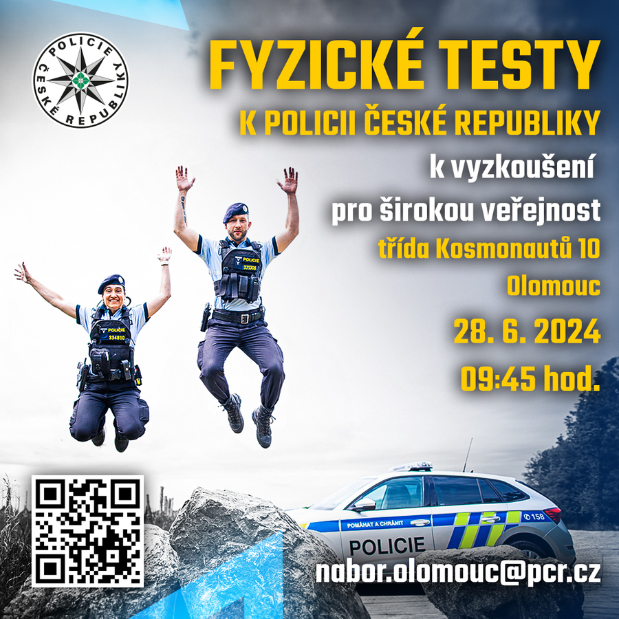 Nenech si ujít tuto příležitost. Pro velký zájem o tuto akci, kdy dubnového termínu fyzických testů na zkoušku se zúčastnilo 38 zájemců a hned 28 splnilo, opět zveme všechny zájemce a zájemkyně z řad široké veřejnosti do budovy Krajského ředitelství policie Olomouckého kraje na třídě Kosmonautů 10 v Olomouci a to v termínu 28. 6. 2024 od 9:45 hod. na další kolo fyzických testů na zkoušku.