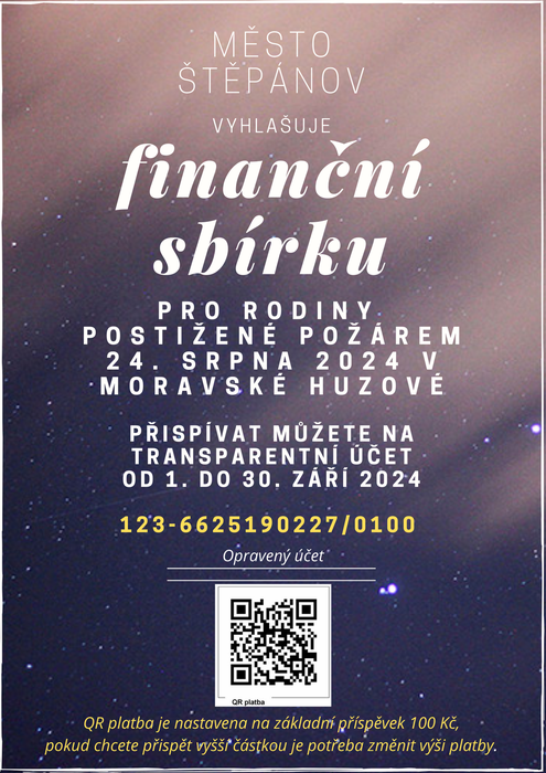 Úvod > Život v obci > Aktuality > Město Štěpánov - Finanční sbírka