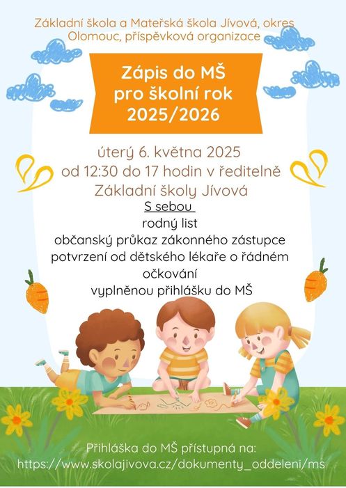 Úvod > Život v obci > Aktuality > MŠ Jívová - zápis, den otevřených dveří
