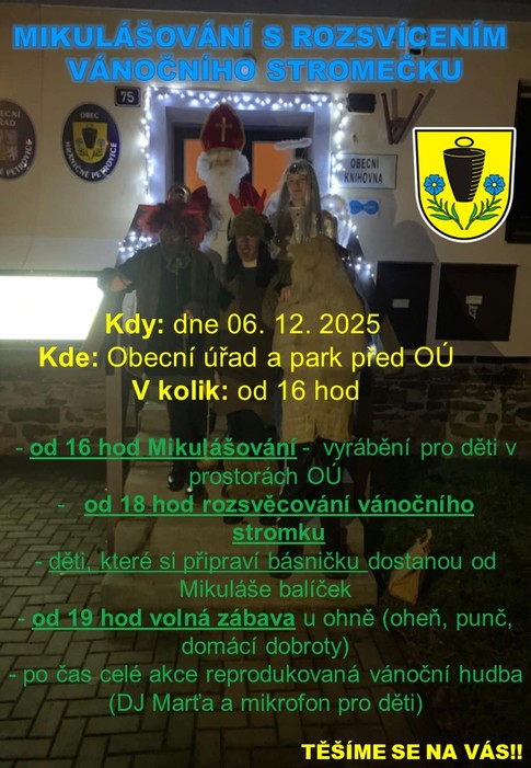 Úvod > Život v obci > Aktuality > Rozsvěcení vánočního stromu a Mikulášování