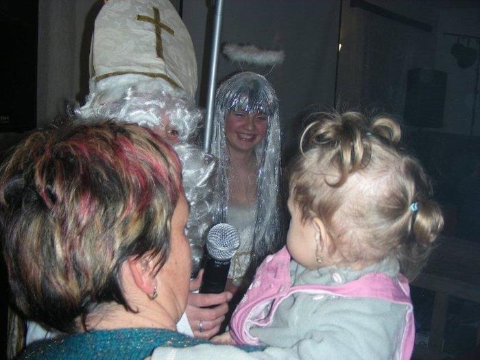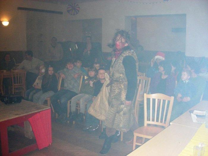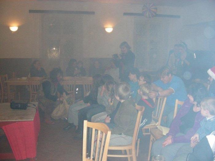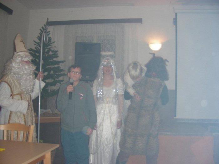 asi po dvaceti minutách se začalo kouřit (někteří dospělí měli i strach, že nám hoří aparatura) a v dýmu se zjevili Mikuláš, anděl a čert!!!! Tento efekt byl úžasný!, jenže měl jednu chybičku – nedalo se moc dobře fotit ;)